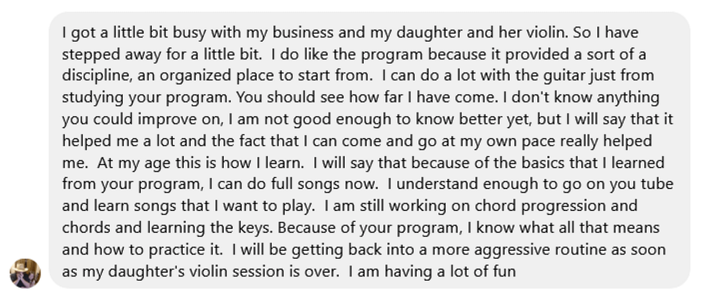 Unlock the 3 Step system that helps you break through plateaus, fix bad habits, and play your favorite songs with expert coaching and tailoured support at every stage.